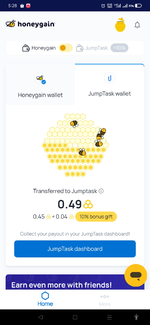 sa honeygain lang lahat yan + bonus lang., kapag gumawa ka ng task sa jumptask meron kasi mga task dun yun ang dagdag sa token mo iba yun sa honeygain sa jumptask dashboard naman yun makikita yun ang magiging dagdag sa honeygain balance mo sa jumptask