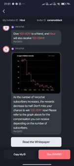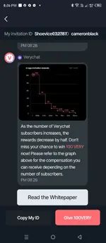 Verychat's mining system is based on mobile mining and invitation rewards. Users can mine VERY with a single tap every 12 hours, and as their level increases, their mining power multiplier increases, allowing them to receive more rewards.